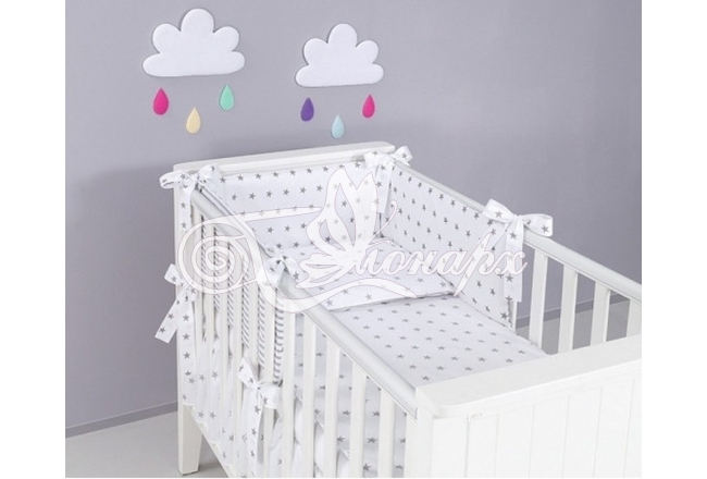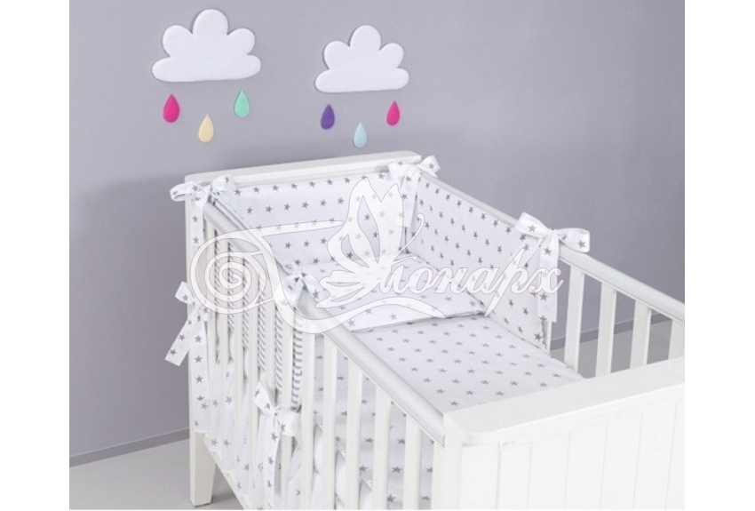 Бортики СО СЪЕМНЫМИ ЧЕХЛАМИ в кроватку: защитят Вашего малыша от ушибов, сквозняков, солнечных лучей и не дадут малышу запутаться в прутьях кроватки.