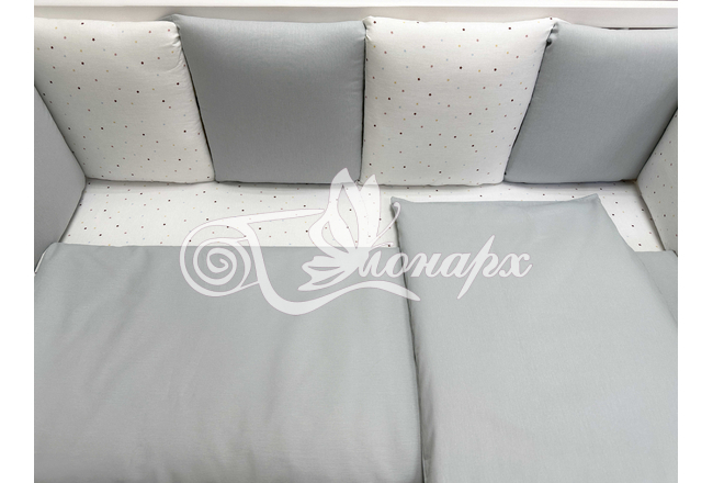 Бортик составной: 12 подушек 31х34 см на замочках упакованы в сумку-переноску.