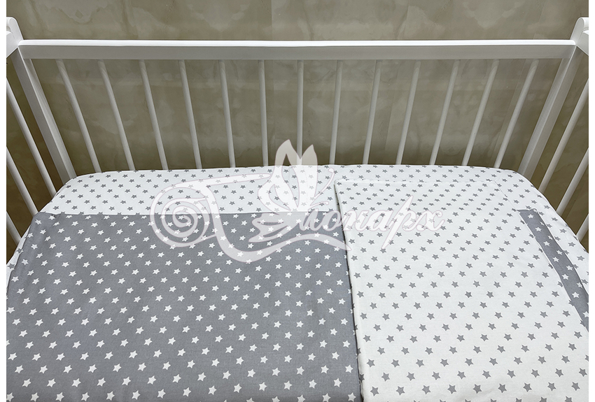 Бортики СО СЪЕМНЫМИ ЧЕХЛАМИ в кроватку: защитят Вашего малыша от ушибов, сквозняков, солнечных лучей и не дадут малышу запутаться в прутьях кроватки. - Простыня на резинке 60х120 см (подходит для стандартной кроватки)